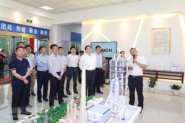 在二氧化碳捕集純化項目中控室,任勇與包信和就如何搶抓新基建機遇,實現(xiàn)企業(yè)更高質量發(fā)展等進行了交流探討。