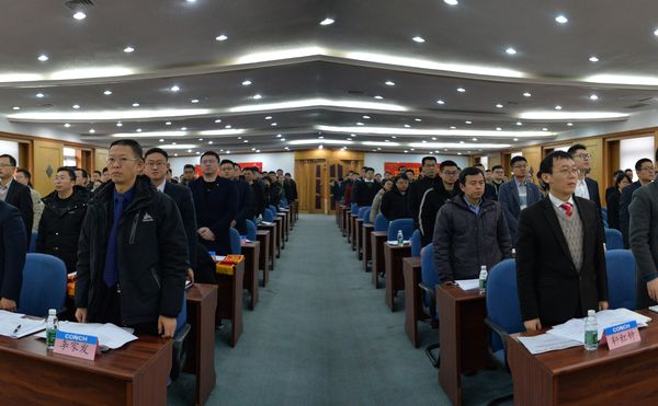 8時30分,大會第一次全體會議在嘹亮的《國歌》聲中開幕。會議由江斌副總主持。